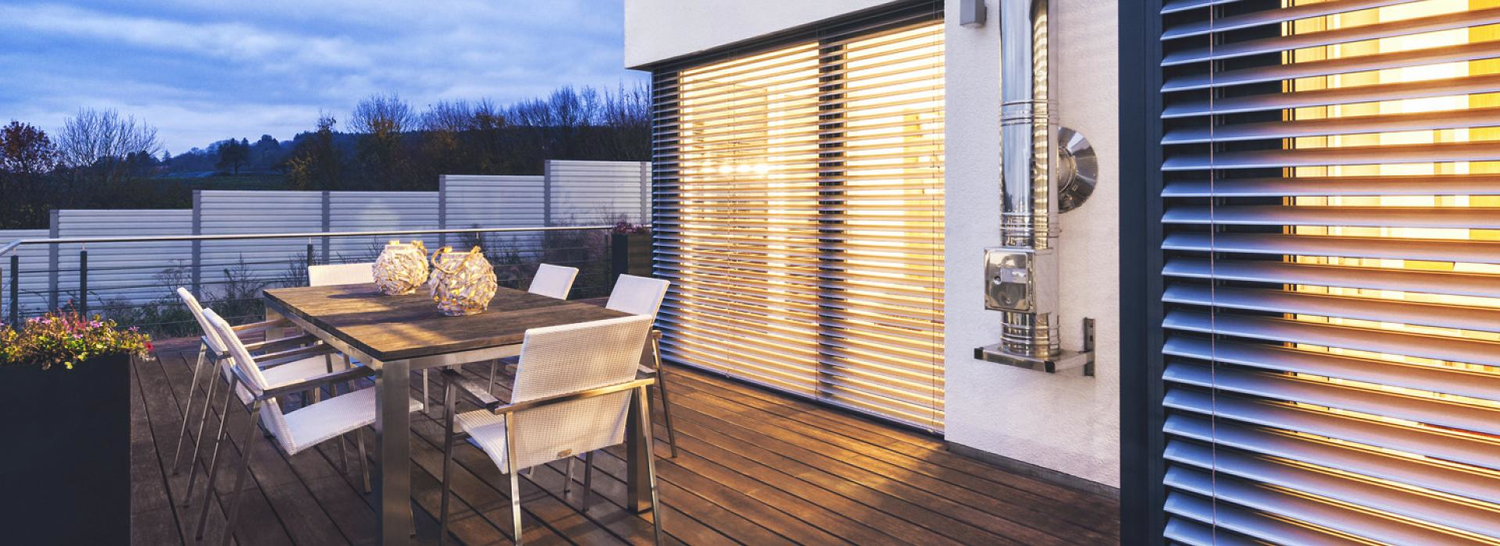 Sonnenschutz – Sichtschutz – Individuelle Fassadengestaltung. Raffstore verbinden Sonnenschutz mit modernem Design. Verstellbare Lamellen schützen vor unerwünschten Einblicken bei nahezu freiem Ausblick von innen. Eine große Farbpalette, sowie unterschiedlichste Lamellen, Führungen und Blendenformen lassen so gut wie keine Wünsche offen. Vorbauraffstoren haben sich seit vielen Jahren sowohl im Neubau als auch in der anspruchsvollen Renovierung bewährt und überzeugen nicht nur durch ihre architektonisch und gestalterisch hochwertigen Elemente. Der besondere Vorteil der Systeme liegt in seiner Position vor dem Fenster. Diese Montageart vermeidet die bei herkömmlichen Kästen möglichen Wärmebrücken über dem Fenster und trägt so zu weniger Energieverbrauch und niedrigeren Kosten bei.